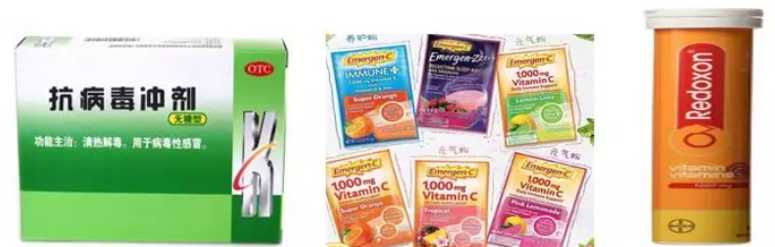 北美代替品: 维C泡腾片(Emergen-C 和 Redoxon)