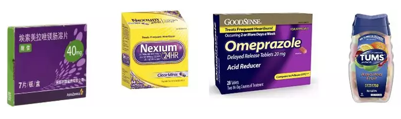 北美代替品: Nexium 24HR、Ranitidine、TUMS